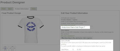 Now, here is the same shirt in my product designer. This is where I decide what the name and description is, as well as the markup. As you can see, I haven’t even added a markup yet and it’s already a dollar more than if you bought it in the marketplace.